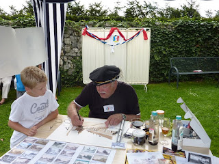 Mijn kleinzoon aan het werk in mijn atelier tijdens 'De Rode Draad':